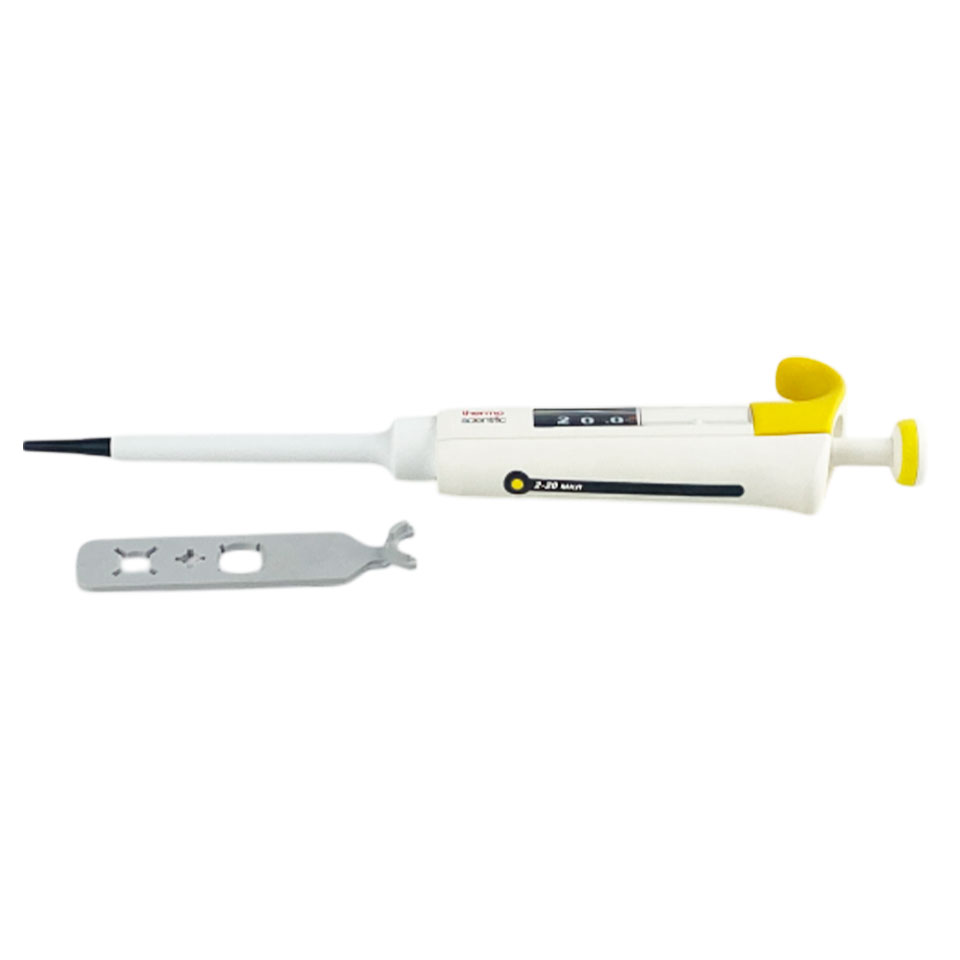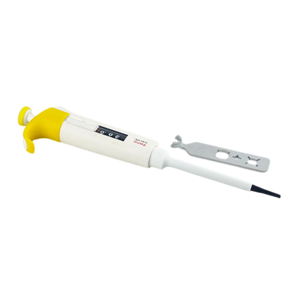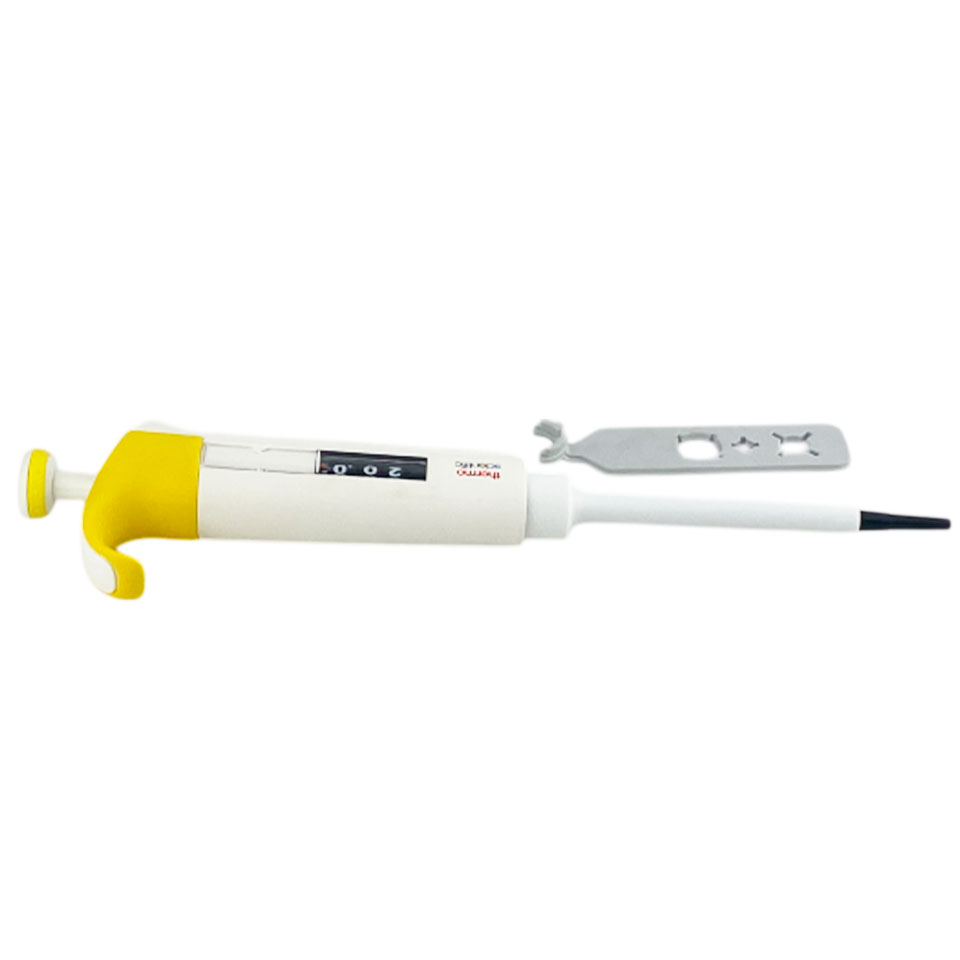 - Одноканальный дозатор с переменным объёмом 2 − 20 мкл для точного и надёжного дозирования.