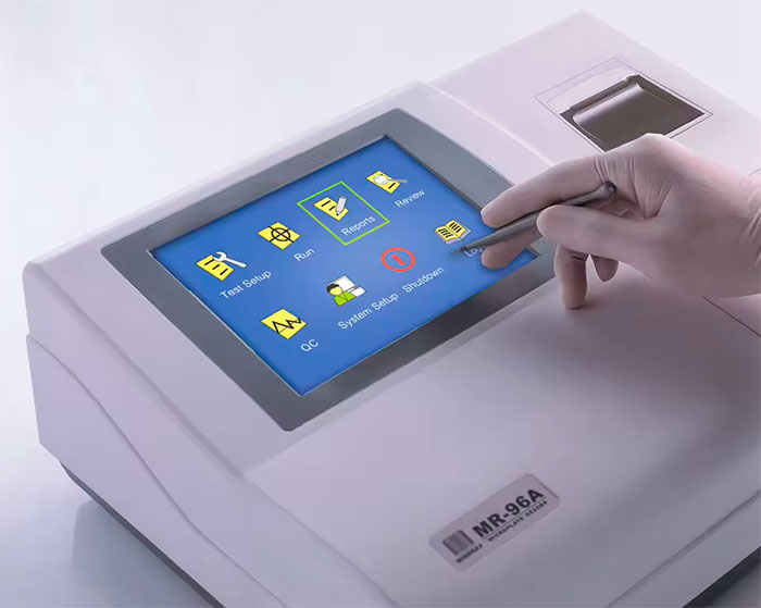 Анализатор оснащён открытой системой, что позволяет использовать тест-системы и реагенты различных производителей. Прецизионная оптическая система и возможность изменения положения планшета обеспечивают высокую точность измерений. Mindray MR−96A отличается надёжностью, компактностью, низкой себестоимостью эксплуатации и удобным интерфейсом управления через сенсорный экран.