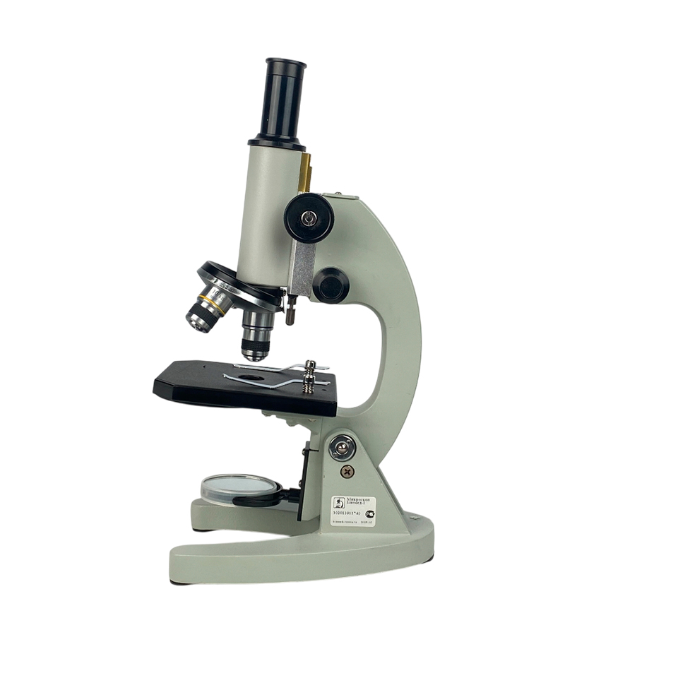 Микроскоп оснащён монокулярной насадкой с выдвижным тубусом, трёхгнездной револьверной головкой и ахроматическими объективами. Источник света — зеркало, что позволяет использовать прибор без подключения к электросети.