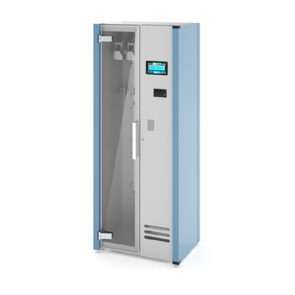 - Рабочий отсек оснащён замком с RFID (бесконтактной) карточкой-ключом; технический отсек открывается отдельным ключом.