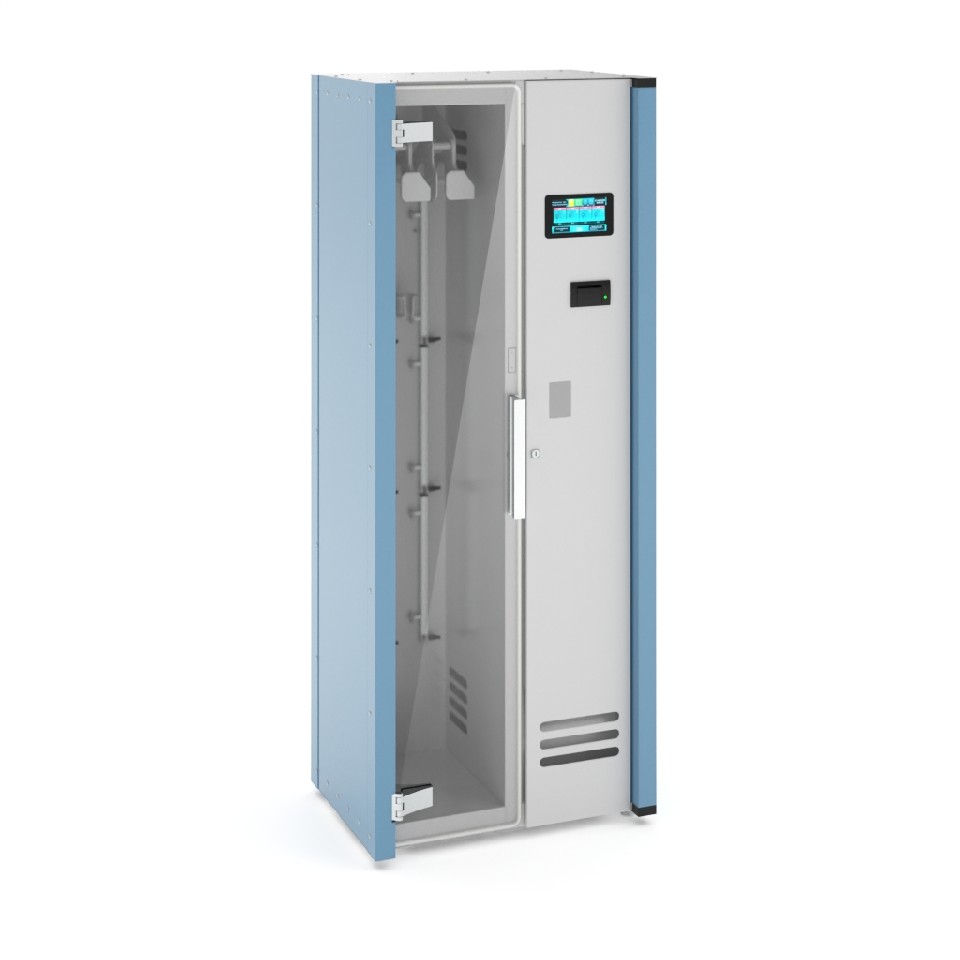 Шкаф оборудован двумя секциями: отсеком для хранения эндоскопов с подвесами в вертикальном положении и техническим отсеком для подготовки стерильного воздуха. Воздух из помещения через вентилятор проходит фильтрацию от пыли и обработку бактерицидным ультрафиолетовым излучением, после чего поступает в основной отсек. Подогретый стерильный воздух подаётся в каналы эндоскопов через штуцеры. Дверь рабочего отсека выполнена из закалённого стекла и оснащена замком.
