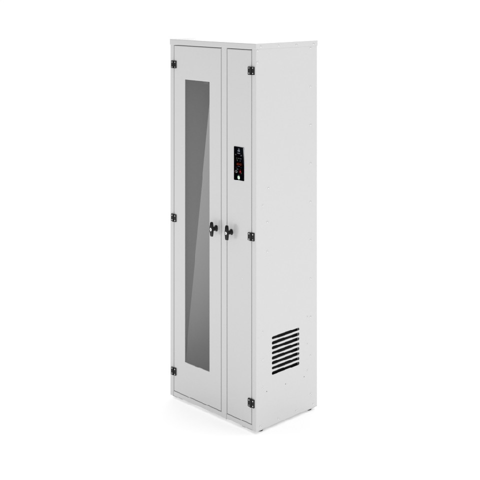 - Раздельная конструкция шкафа с отсеком хранения и техническим отсеком для подготовки воздуха снижает риск вторичной контаминации.