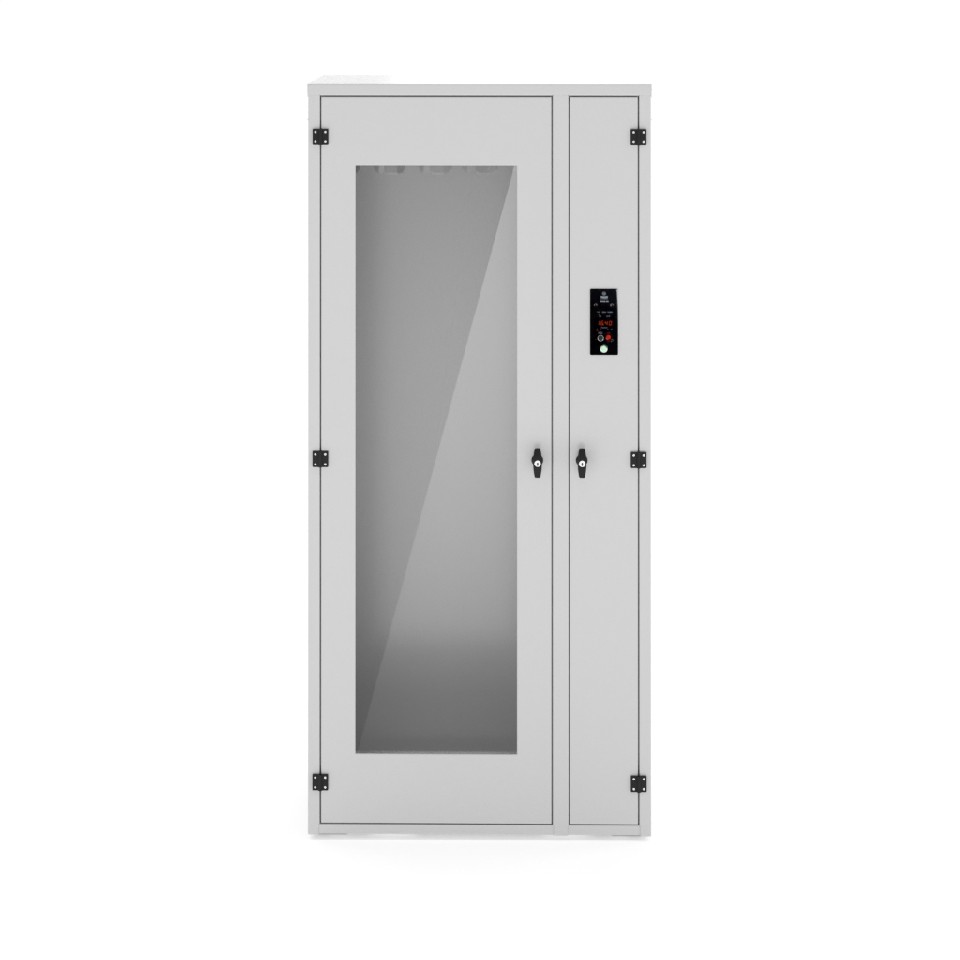 - Раздельная конструкция шкафа с отсеком хранения и техническим отсеком для подготовки воздуха снижает риск вторичной контаминации.