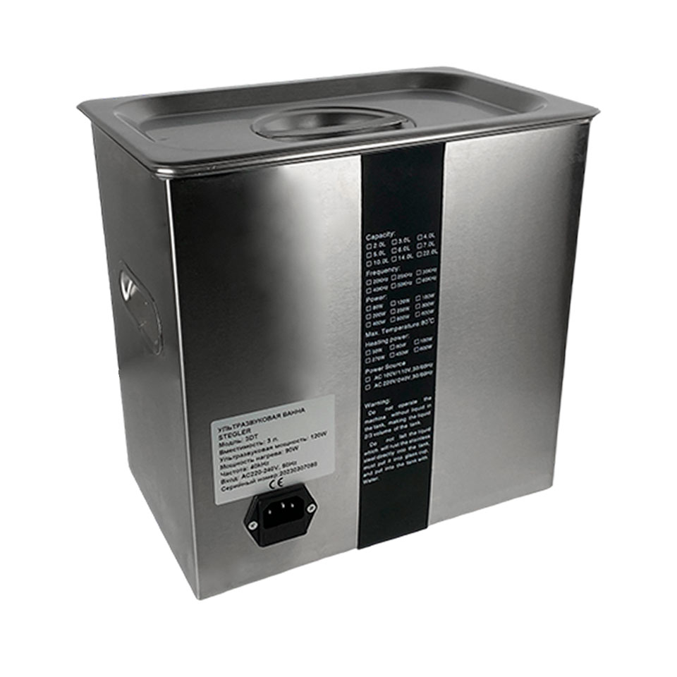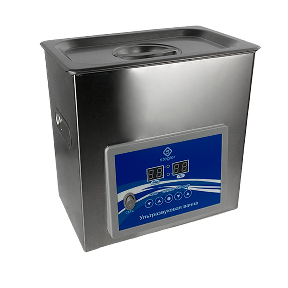 Ультразвуковая ванна Stegler 3DT — компактное устройство для глубокой очистки и обеззараживания инструментов, деталей и изделий различных типов. Она использует эффект кавитации для эффективного удаления загрязнений с поверхностей, находящихся в ванне с чистящей жидкостью.