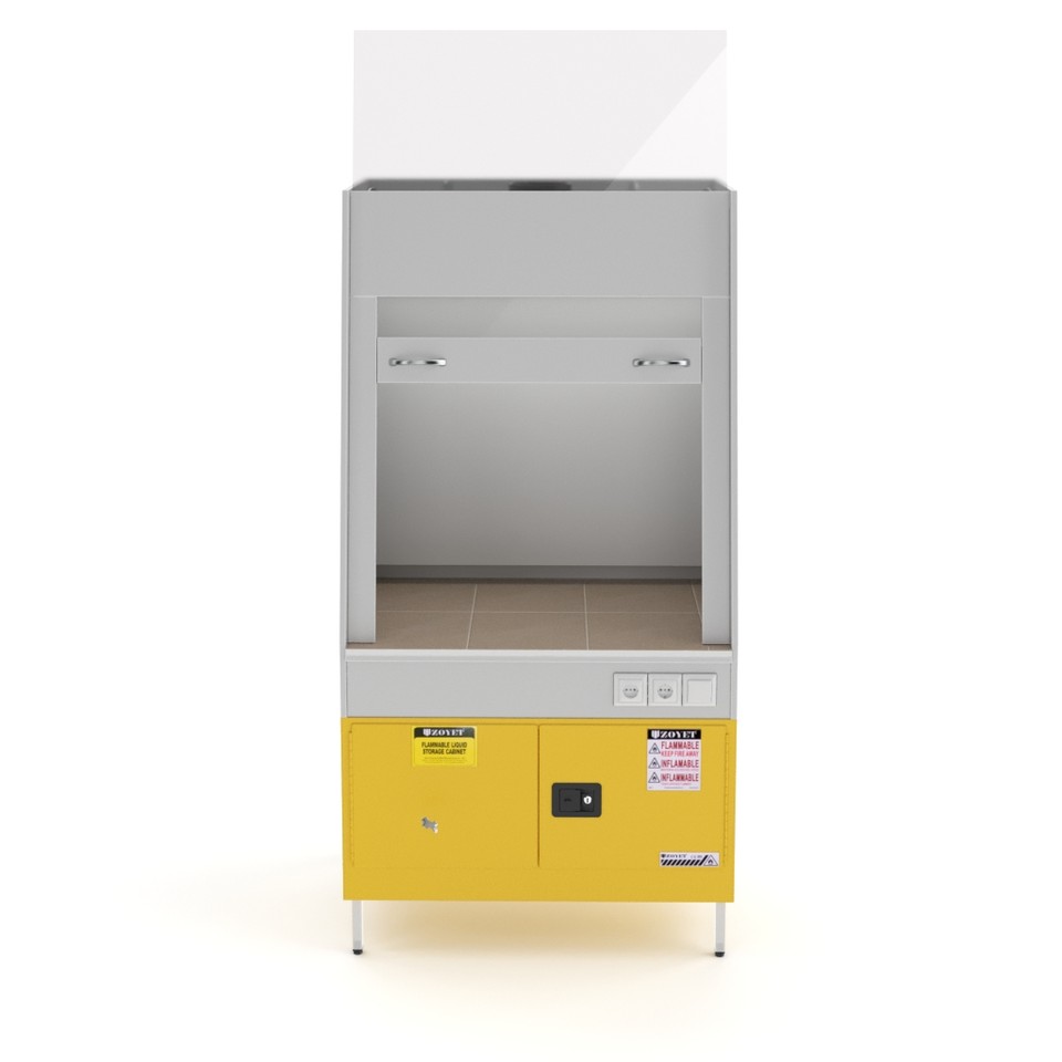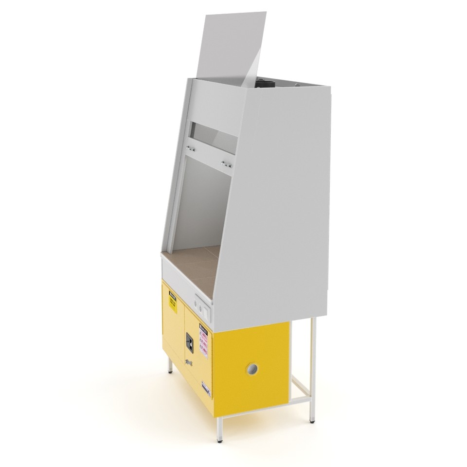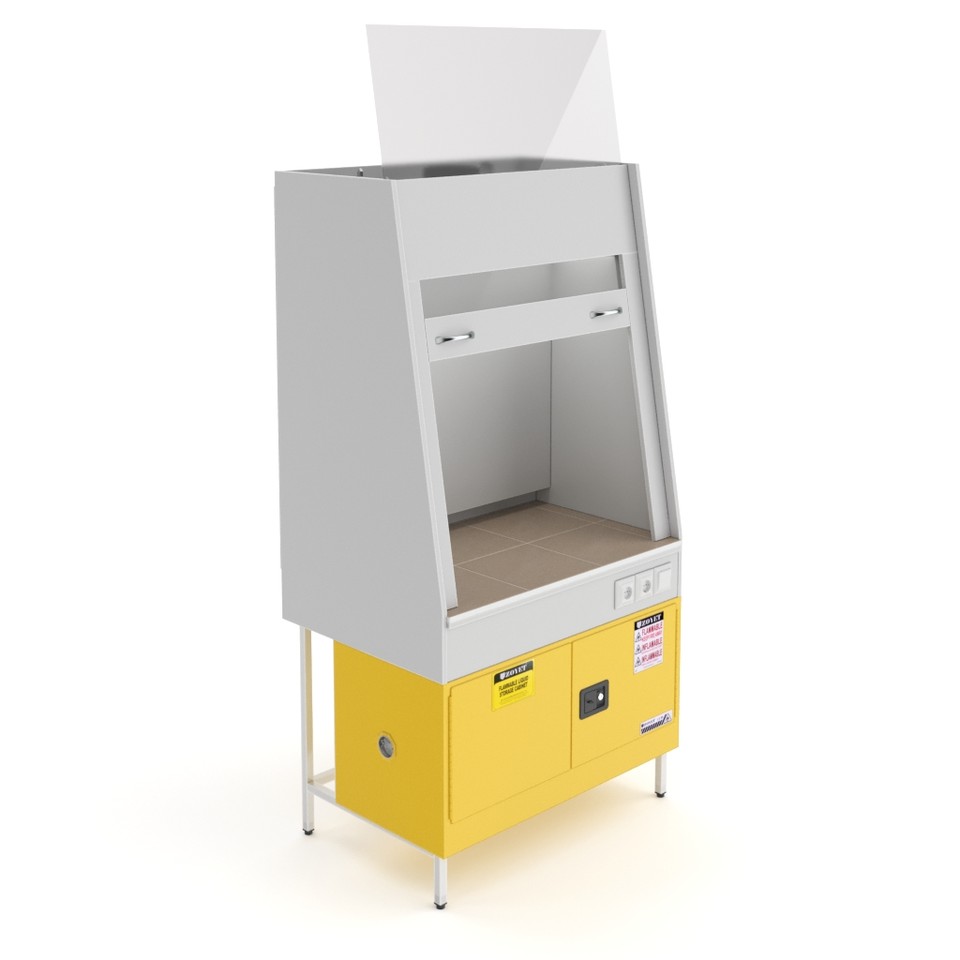 Нижний отсек шкафа с двойными стенками и изоляционным воздушным пространством объёмом 57 л обеспечивает огнестойкость и защиту лаборатории от случайного разлива жидкостей. Дверцы отсека открываются на 180 градусов и оборудованы замком, который можно опломбировать.